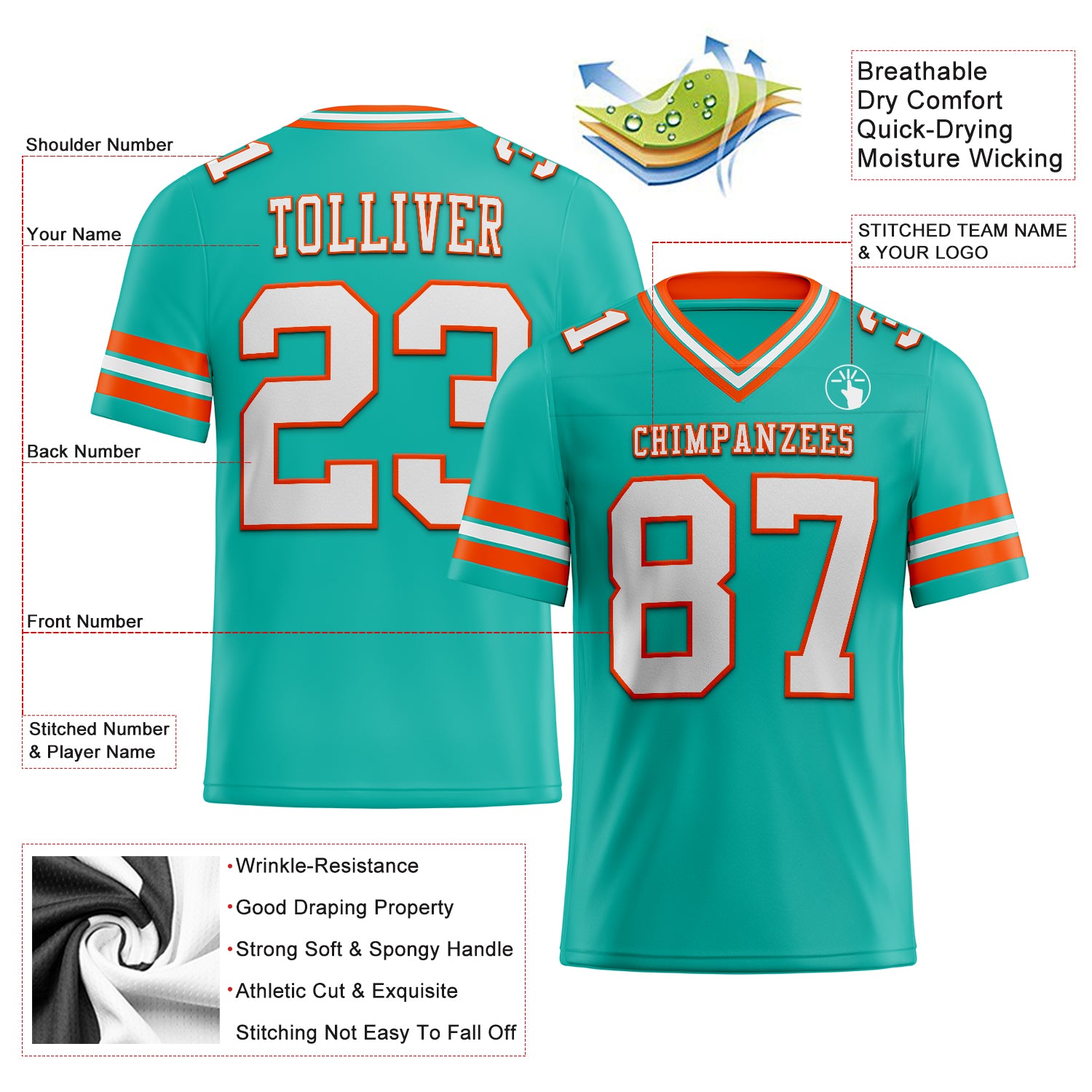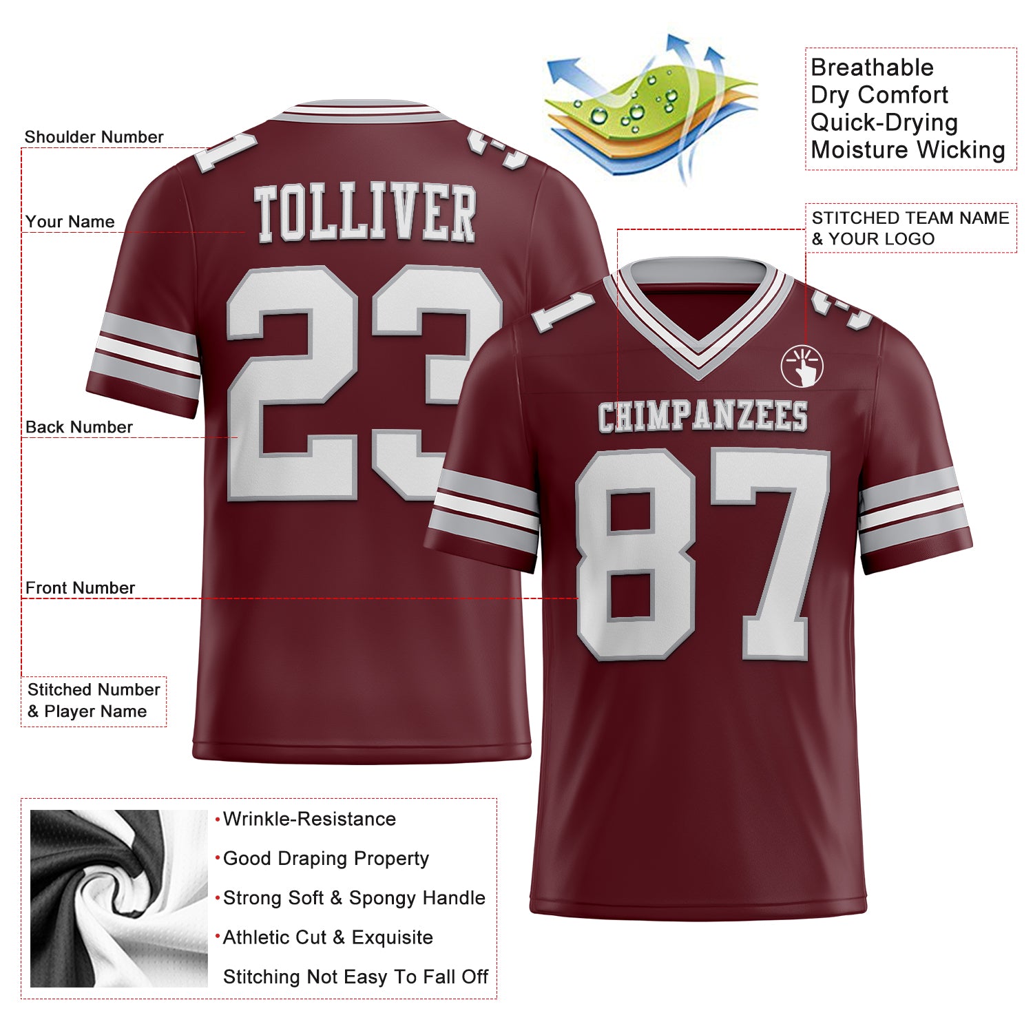 Custom football jerseys, designed for players, coaches, and football enthusiasts alike
